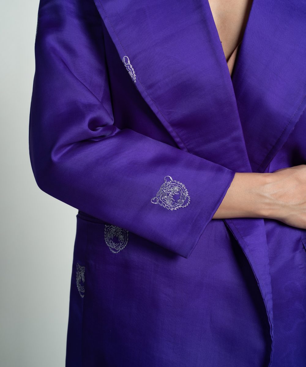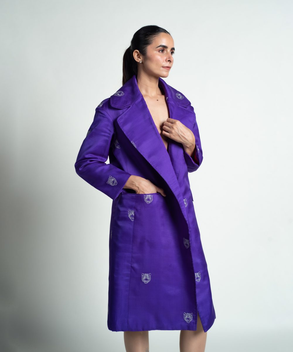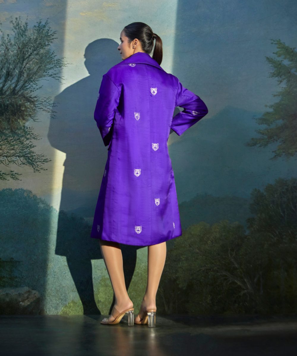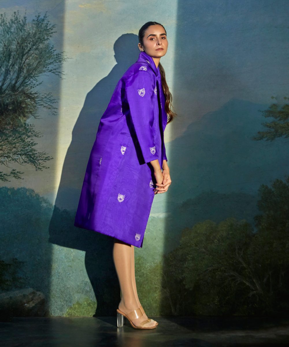 Introducing the Dodo Jacket, a testament to artistic finesse and homage to the extinct species. Each stroke on this masterpiece is a symphony composed by talented miniature artists, as they bring the dodo to life, entwined beautifully with leaves in intricate detail. Fully hand-painted, this jacket is more than an ensemble, adorned in a sublime light pastel pink, the jacket is crafted from rich pure silk organza, ensuring a luxurious feel against the skin. The meticulous detailing extends to the interior, where it is lined and quilted with opulent green cotton satin, offering a harmonious contrast. What makes the Dodo Jacket truly special is its fully hand-painted nature. The artistic touch, applied with precision by miniature artists, transforms this jacket into a wearable masterpiece. It becomes more than an item of clothing; it becomes a statement, an ode to a species lost to time, and a canvas that tells a poignant tale of nature’s intricacies.